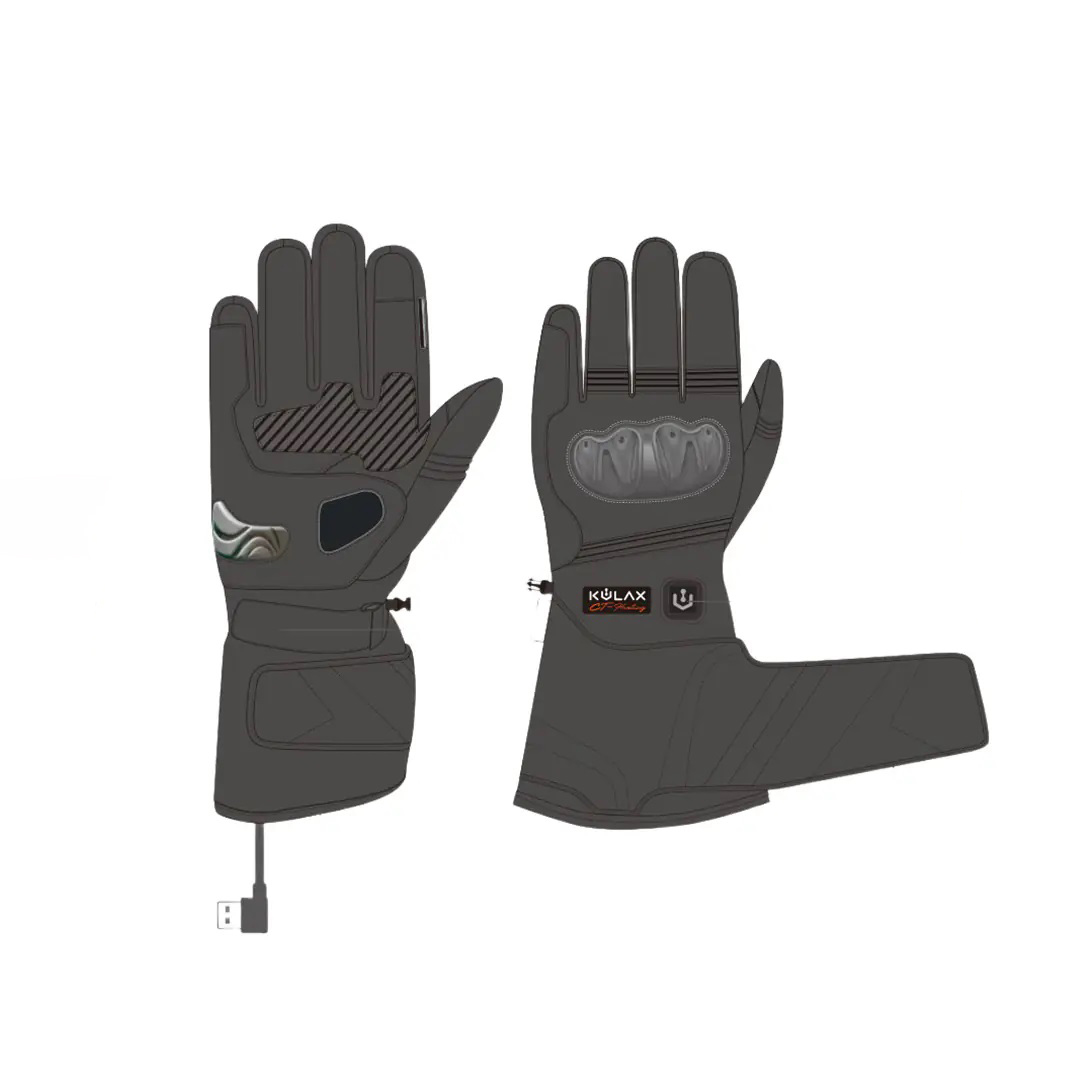 کلید کنترل دما، تسمه قابل تنظیم، دوشاخه USB (داخل دستکش)، جیب باتری (داخل دستکش)، بند کشی